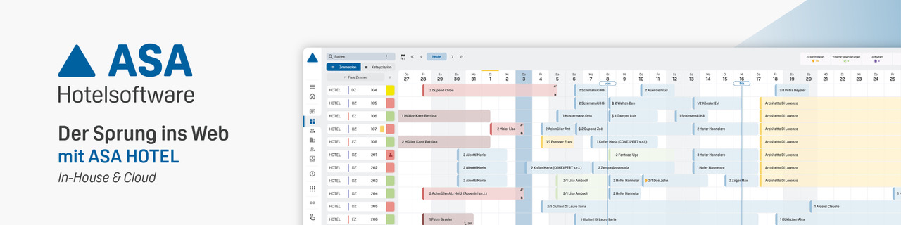 ASA wurde 1989 gegründet und hat sich von Anfang an auf die Entwicklung von Hotelsoftware konzentriert. Im Jahr 2000 wechselten wir von DOS zu Java und im Jahr 2024 präsentierten wir stolz ASA HOTEL mit neuer Oberfläche, die Cloud- und Web-fähig ist. Aber wir sind noch lange nicht am Ende. Der Generationswechsel hat bereits stattgefunden und wir streben ein langfristiges, organisches und gesundes Wachstum an. Wir halten, was wir versprechen.